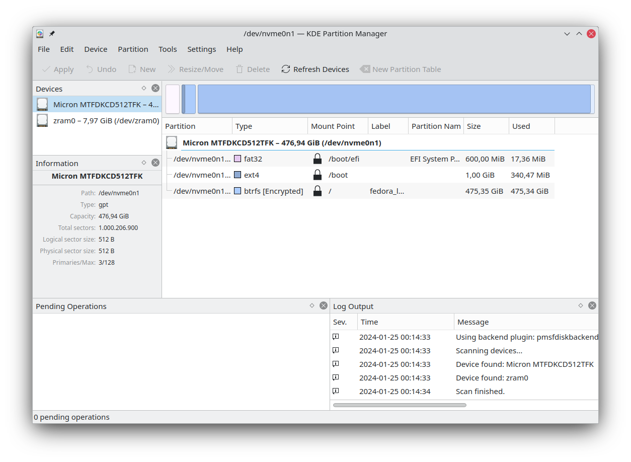 KDE Partition Manager is an application to help you manage the disk devices, partitions and file systems on your computer. It allows you to easily create, copy, move, delete, resize without losing data, backup and restore partitions.
