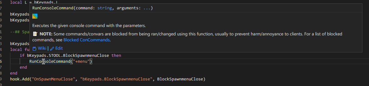 - Auto completion & wiki integration for almost everything in Garry's Mod