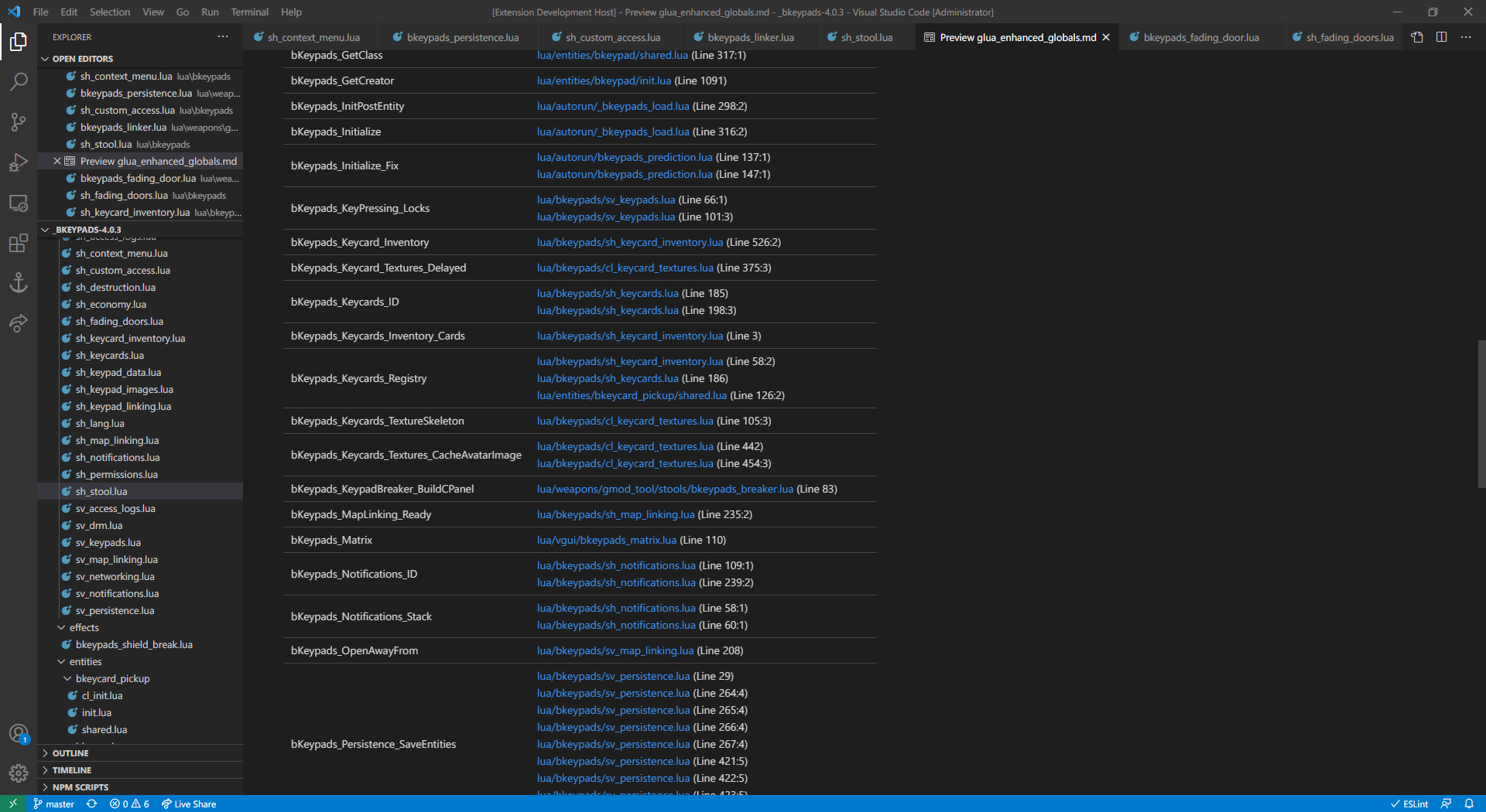 This extension uses the gluadump addon to extract some information (e.g. debug.getinfo data for the "View Source" buttons) from Garry's Mod and may need to periodically be updated as new features and libraries are added to Garry's Mod.