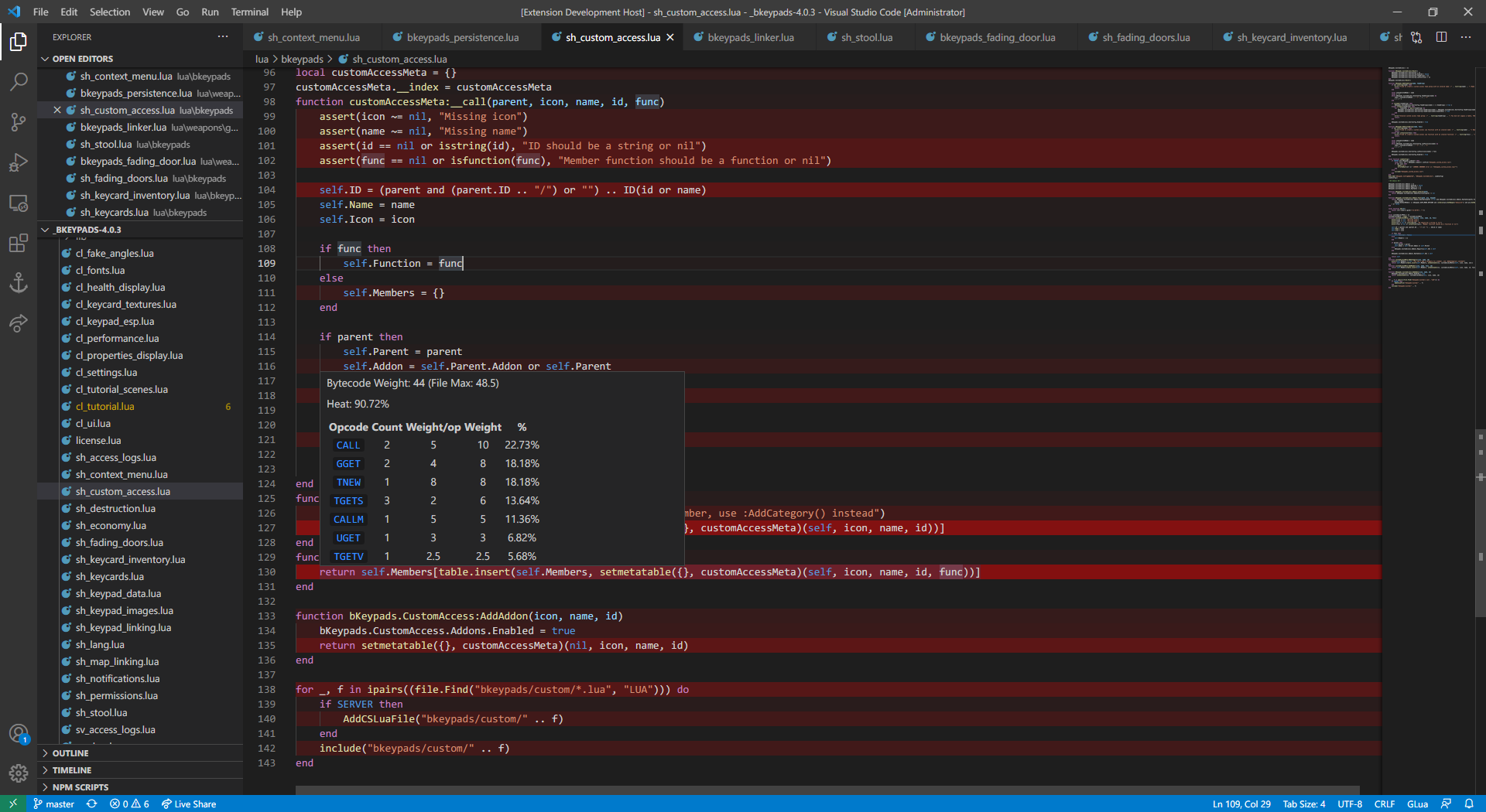 Generates a (very, VERY approximate) "heatmap" of how heavy some parts of your code are, and allows you to inspect what bytecode is being generated and where.