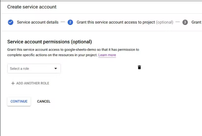 Keep it somewhere safe. This key file contains the credentials of the service account that we need in our Node.js script to access our spreadsheet from Google Sheets.
