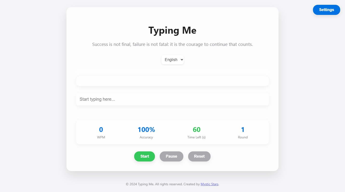 Typing Me 是一个现代化的在线打字练习程序,旨在帮助用户提高他们的打字速度和准确性。