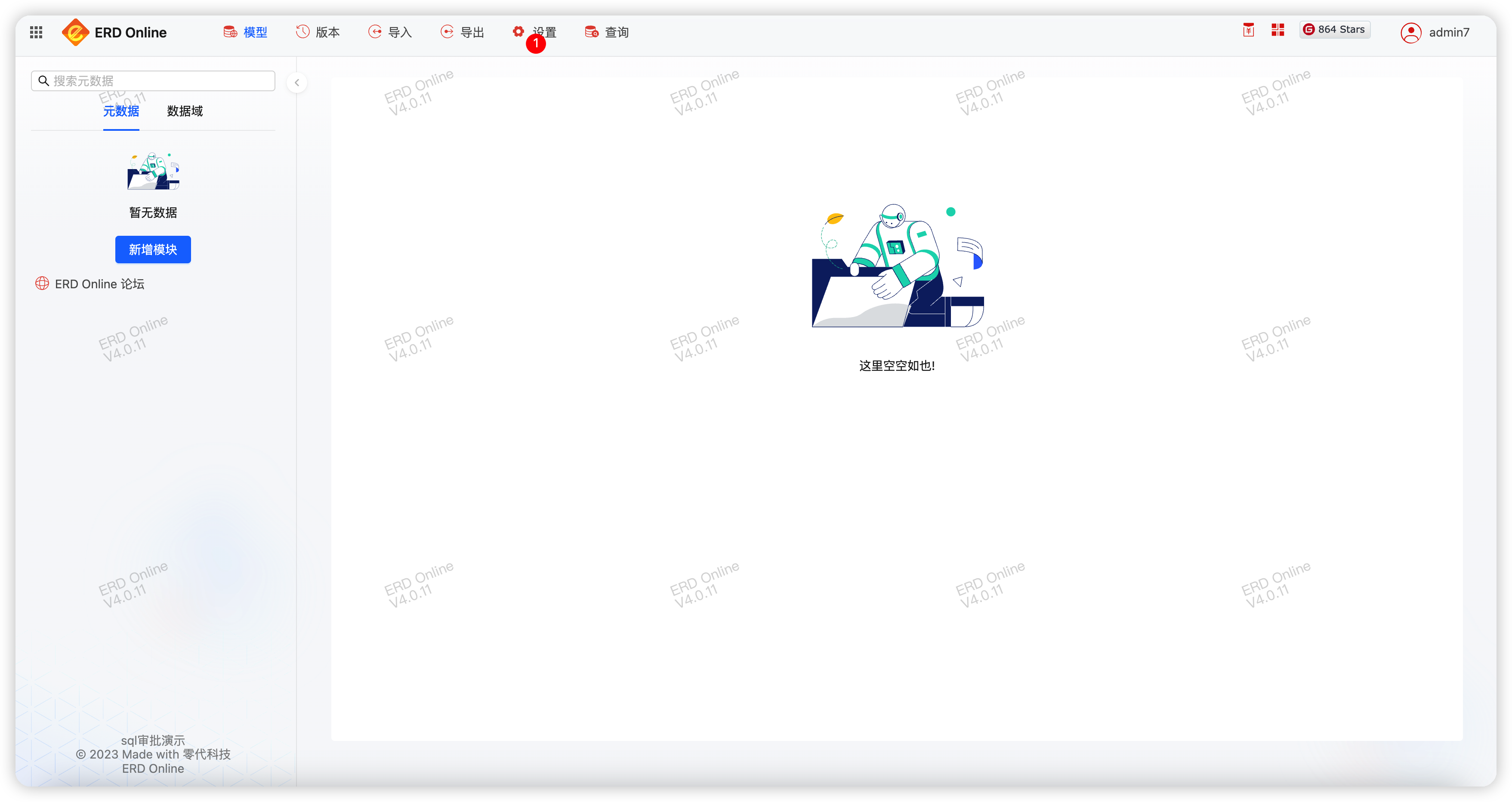 元数据 ERD Online 体验:https://erd.zerocode.net.cn
