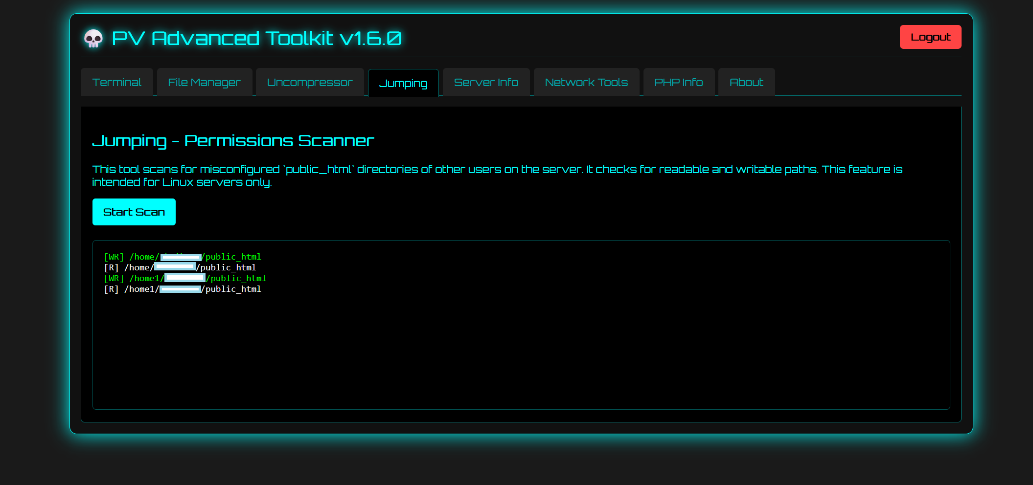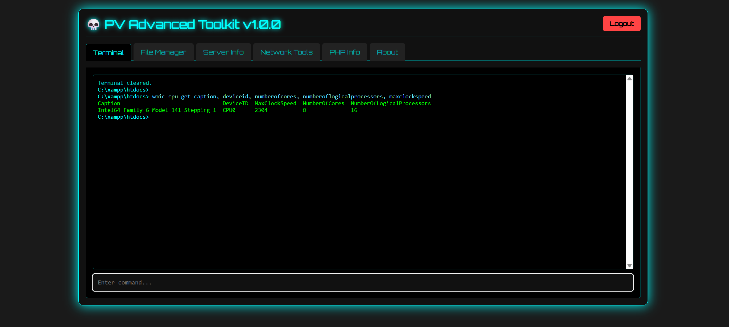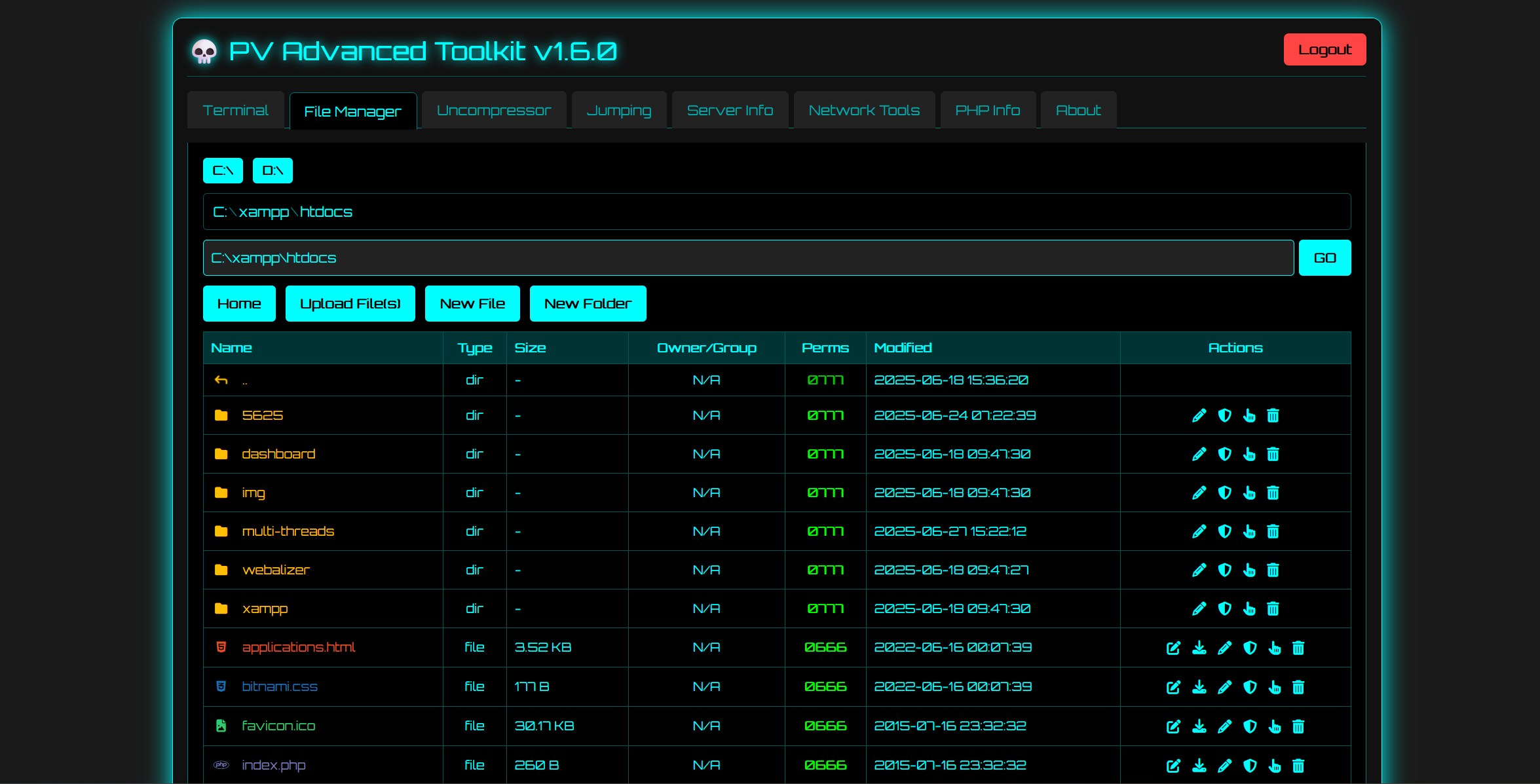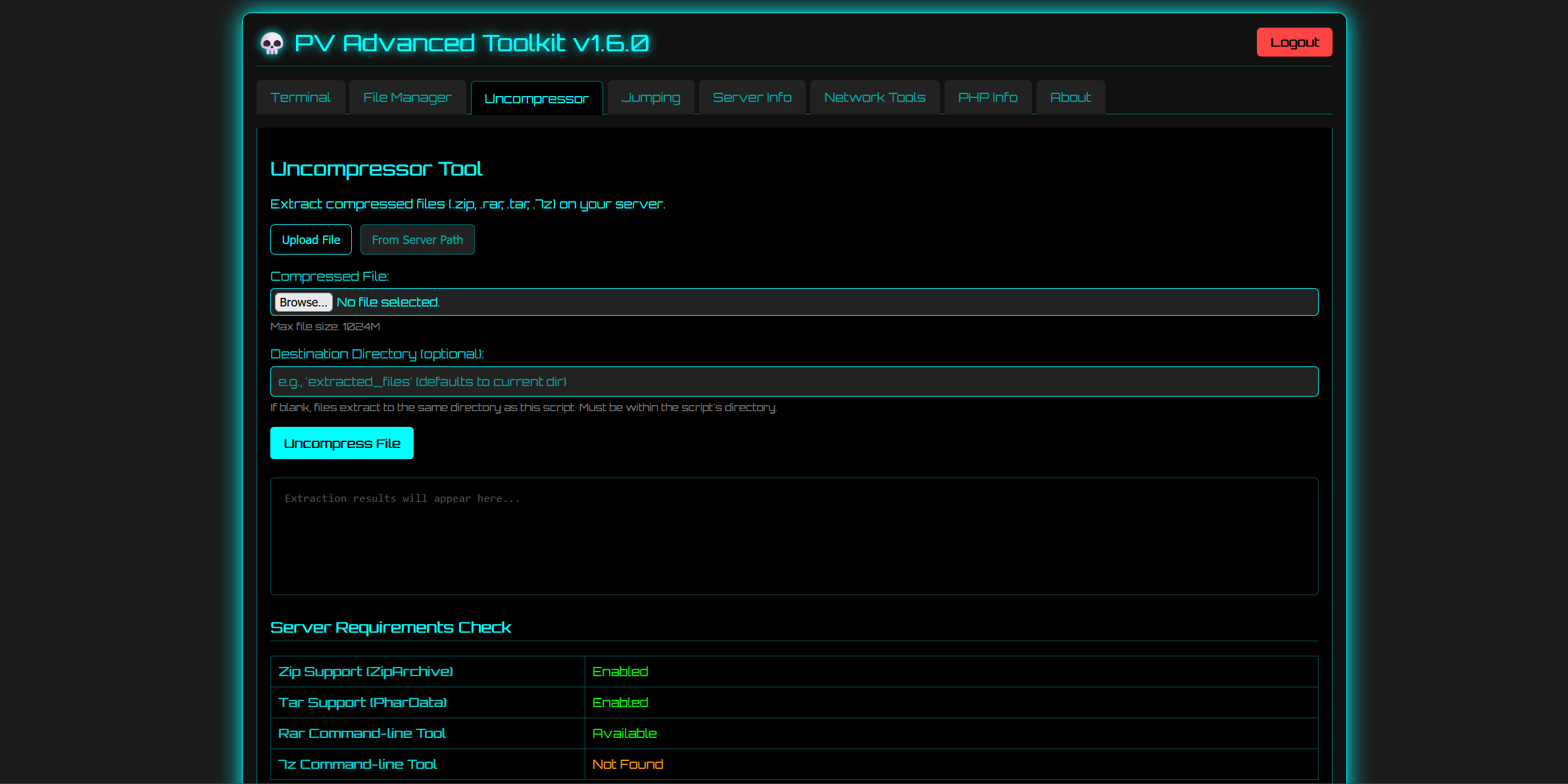 A comprehensive, single-file, PHP-based web shell and server management interface. It's designed for server administrators and security professionals to facilitate system inspection, management, and basic network operations through a user-friendly, retro-themed web interface.